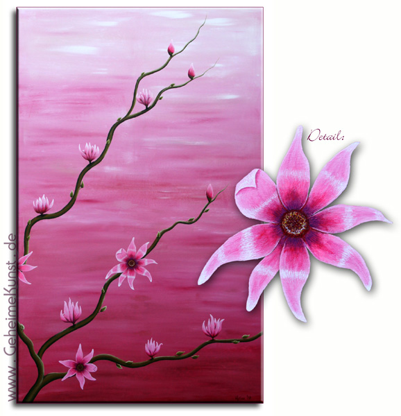160 x 100 cm, handgemaltes Unikat, Auftragsarbeit, Motiv: Magnolie, Acryl auf Leinwand, 2008